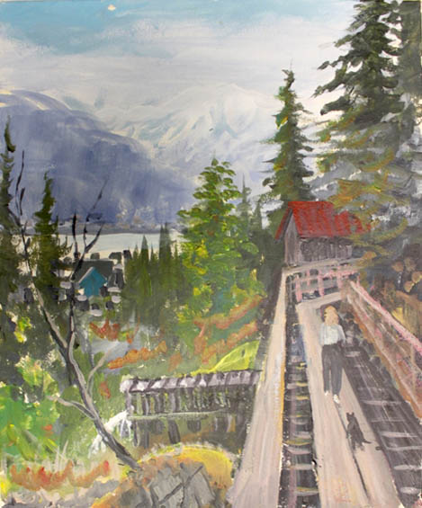 Bend in the River was donated to the Juneau-Douglas City Museum in memory of William D. De Armond, who died in Seattle at the age of 79 on June 28, 2017. Bill is survived by his wife, Malin Babcock. Along with becoming a charter and ongoing current member of the Friends, Bill was also a major supporter of the Museum’s objectives, notably, assistance in the Museum’s project to realize his late father’s Juneau-related work in digital form: “Digital Bob.”